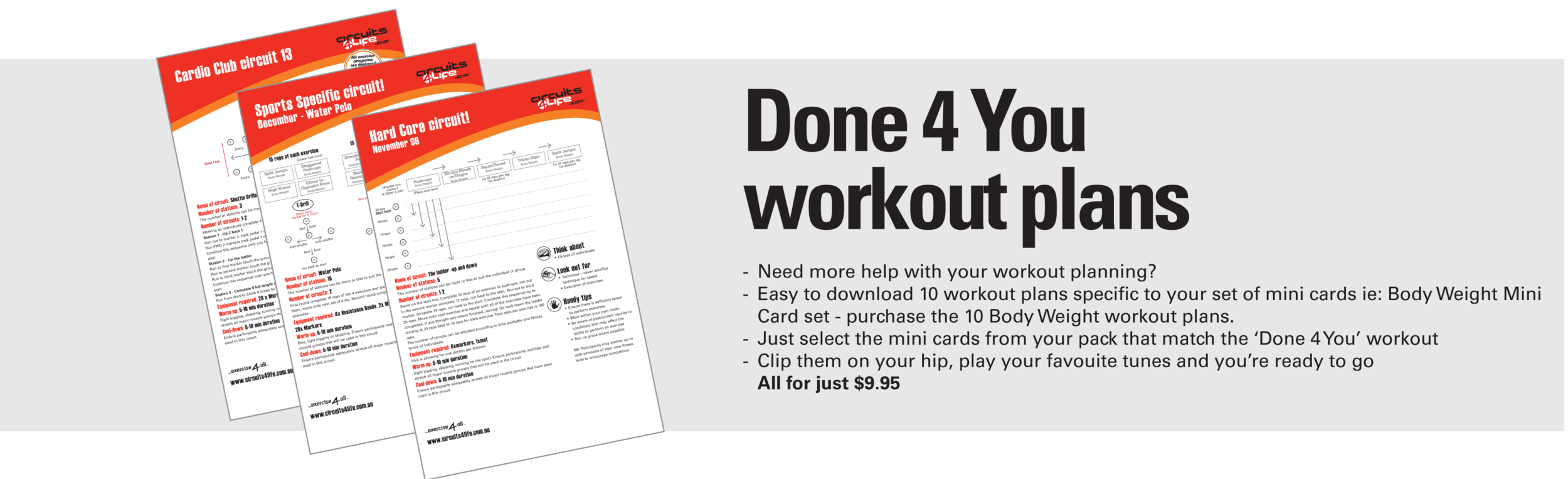 Need help with your exercise plan. See our Done 4 You exercise plans